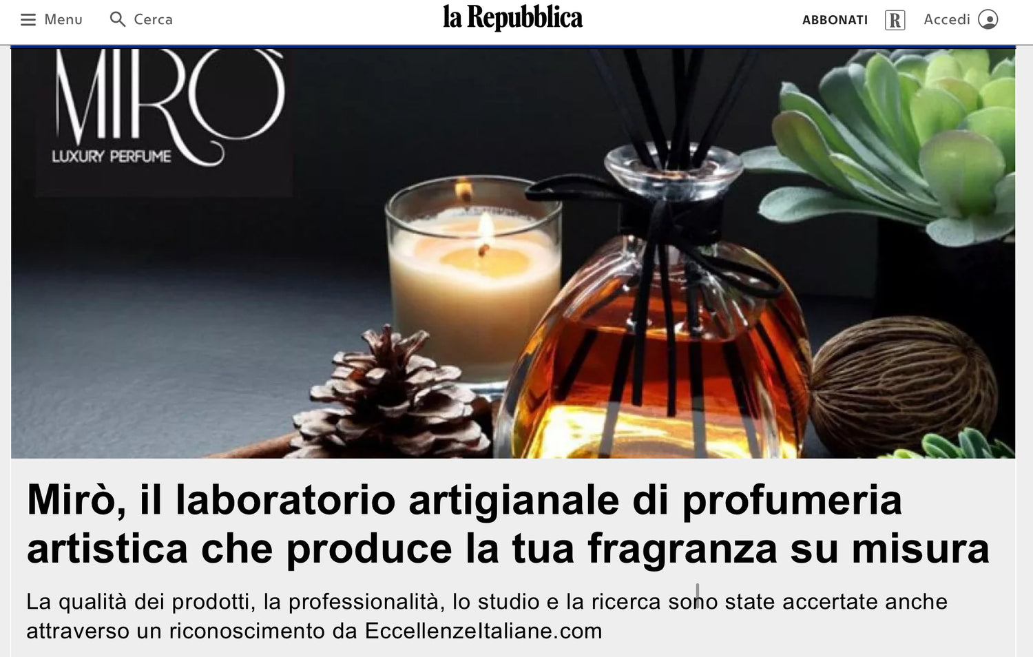La Repubblica ci ha dedicato un articolo sulle “Eccellenze della Campania”, riconoscendo il nostro impegno nella profumeria artistica su misura.